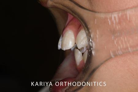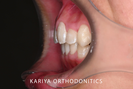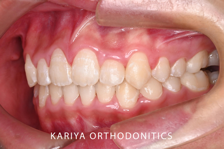 上下のオーバージェットもかなりあったのですが、上顎歯列全体の遠心移動により、classⅡであった大臼歯関係をclassⅠにすることができました。