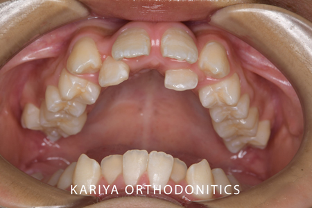 上顎は重度の叢生があり、2重歯列の状態でした。